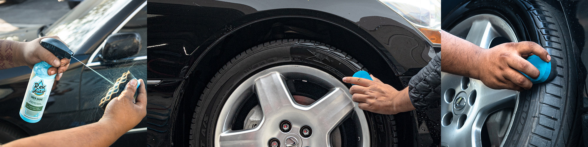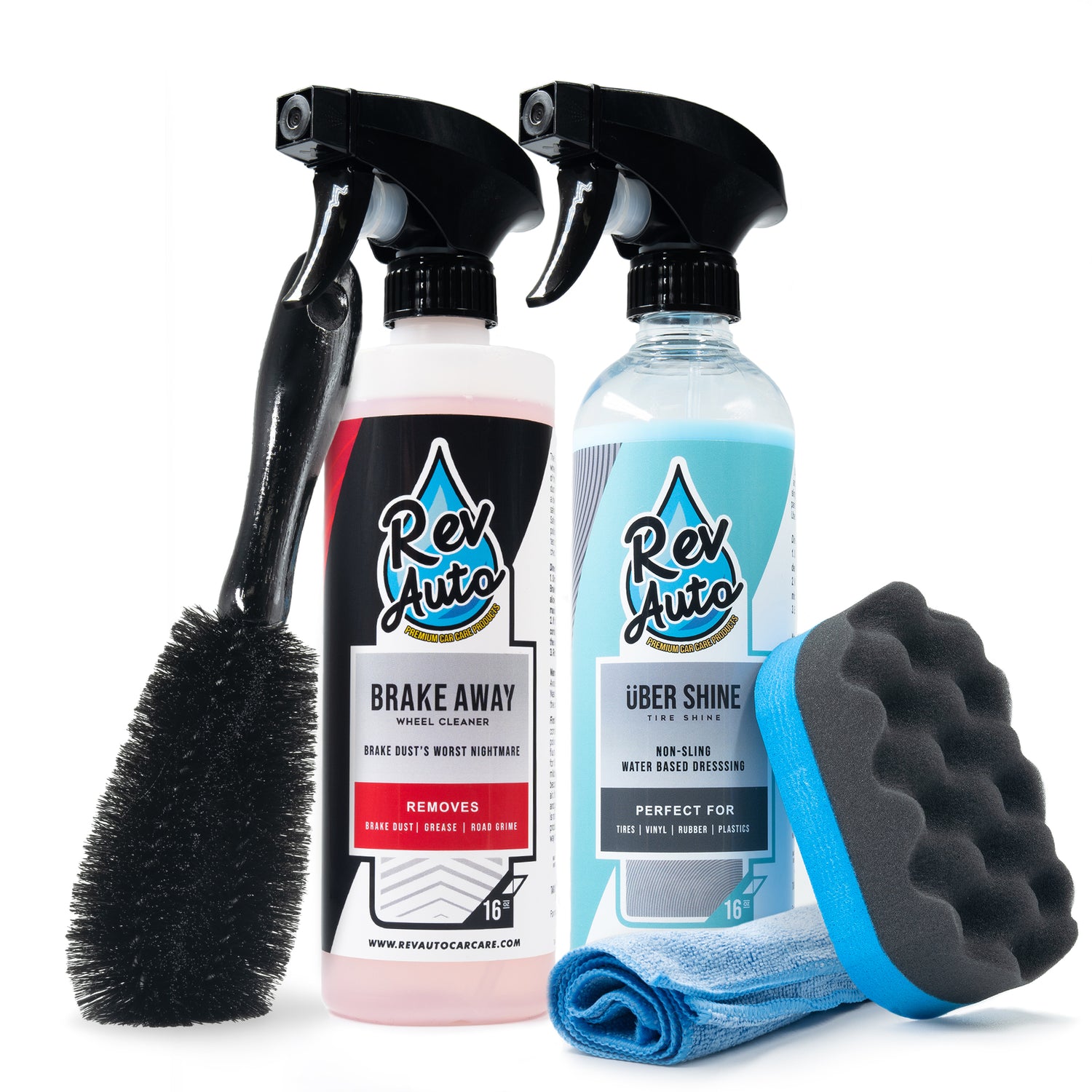 Our kit also features Uber Shine, a water-based tire shine/rubber dressing that will give your tires a lustrous natural deep shine. With its no-sling formulation, you don't have to worry about unwanted marks on your fenders or panels. Uber Shine also protects your tires from cracking by hydrating them.